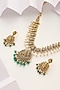 Gold Finish Handcrafted Green Stone Temple Necklace Set
