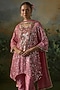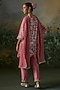 Featuring a deep rose kurta in georgette base with thread and sequins embroidery. It is paired with raw silk pants and a georgette stole. Accentuate it with statement earrings, a sleek clutch, and embellished juttis for a graceful look, perfect for festive gatherings or intimate celebrations.