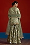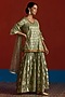 Featuring a fern green short kurta in banarasi chanderi base with embroidery. It is paired with sharara pants and a net dupatta. Accentuate it with statement earrings, a sleek clutch, and embellished juttis for a graceful look, perfect for festive gatherings or intimate celebrations.