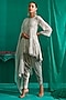 Featuring an ice blue shimmer high low kurta in georgette base with mirror and thread embroidery. It is paired with matching modal satin dhoti pants having lace details and a georgette dupatta.