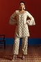 Featuring an ivory kurta in georgette base with gota, pearl and mirror embroidery. It is paired with pants. Accentuate it with statement earrings, a sleek clutch, and embellished juttis for a graceful look, perfect for festive gatherings or intimate celebrations.