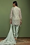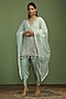 Featuring a mint A-line kurta in net base with pearl, sequins and mirror embroidery. It is paired with satin dhoti and a net dupatta. Style it with polki earrings and block heels for festive gatherings or pooja ceremony.