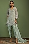 Mint Net Sequin Embroidered A-Line Kurta Set