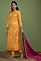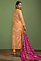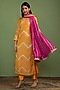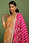 Featuring a mustard long kurta in georgette base with gota work. It is paired with raw silk pants and a rani pink chinon dupatta. Style it with polki earrings and block heels for festive gatherings or pooja ceremony.