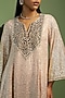 Featuring a pale pink kurta in georgette base with mirror and sequins embroidery. It is paired with satin pants and a net dupatta. Style it with polki earrings and block heels for festive gatherings or pooja ceremony.