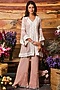 Featuring a pink champagne kurta in georgette base with mirror and lace embroidery. It is paired with matching crinkled sharara pants.