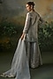 Featuring a powder blue kurta in brocade and georgette base with embroidery. It is paired with georgette sharara pants and a net dupatta. Accentuate it with statement earrings, a sleek clutch, and embellished juttis for a graceful look, perfect for festive gatherings or intimate celebrations.