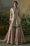 Featuring a powder pink kurta in brocade and georgette base with embroidery. It is paired with georgette sharara pants and a net dupatta. Accentuate it with statement earrings, a sleek clutch, and embellished juttis for a graceful look, perfect for festive gatherings or intimate celebrations.