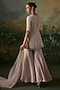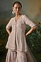 Featuring a powder pink tunic in georgette base with embroidery. It is paired with tissue sharara pants and a soft net dupatta. Accentuate it with statement earrings, a sleek clutch, and embellished juttis for a graceful look, perfect for festive gatherings or intimate celebrations.