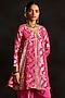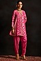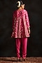 Featuring a rani pink tunic in banarasi base with mirror and threadwork. It is paired with tulip pants. Accentuate it with dangler earrings and heels for festive ceremonies.