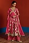 Featuring a razzmatazz-colored anarkali in banarasi chanderi base with embroidery. It is paired with flared palazzo pants and a georgette dupatta. Accentuate it with statement jewellery and heels for festive occasions.