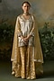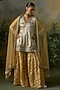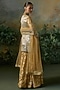 Featuring a saffron and gold kurta in brocade and georgette base with embroidery. It is paired with georgette sharara pants and a net dupatta. Accentuate it with statement earrings, a sleek clutch, and embellished juttis for a graceful look, perfect for festive gatherings or intimate celebrations.