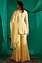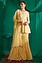 Featuring a yellow short peplum kurta in georgette base with sequins embroidery. It is paired with mukaish sharara pants and a net dupatta.
