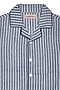 Featuring a blue shirt in cotton base with striped block print, front opening buttons and piping details. It is paired with matching elasticated pyjama pants.