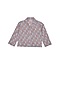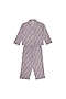 Featuring a dull blue shirt in cotton base with block print, front opening buttons and piping details. It is paired with matching elasticated pyjama pants.