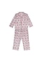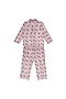 Featuring a grey shirt in cotton base with block print, front opening buttons and piping details. It is paired with matching elasticated pyjama pants.