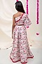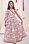 Featuring an off-white and red lehenga for girls in chinon base with texture embroidery. It is paired with a blouse having pleats and balloon sleeves. Style this designer set with sandals and a cute headband for any festive occasion or ceremonial events.