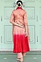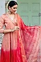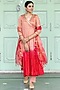 Featuring a peach and red angrakha anarkali in chanderi blend base with self-sequined texture and embroidery. It is paired with matching pants and an ombre organza dupatta having self-zari weaving.