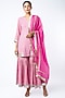 Featuring a taffy pink kurta in cotton lurex base with gota patti embroidery. It is paired with matching sharara pants and an organza dupatta.