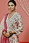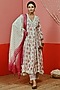 Featuring a white anarkali in cotton base with print. It is paired with contrasting pants and an organza dupatta.