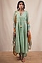 Featuring a mint green kurta in cotton viscose base with silver stripes and dots. It is paired with matching pants having a breathable cotton lurex base and an ombre organza dupatta having gota detailing and a fringed edge.