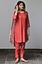 Vermillion Red Cotton Lurex Straight Kurta Set