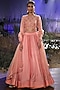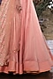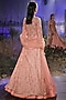 Featuring a dark peach high-low anarkali in chanderi silk base with dabka, thread, and cutdana hand embroidery. It is paired with a matching lehenga and a sheer net dupatta.