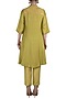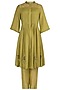 Featuring a lime green kurta in banarasi munga base with pintucks detailing along the yoke. It is paired with matching straight pants.