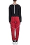 Featuring a red wide leg cut pants in nylon and polyester stretch base with colour contrast stripe and piping.