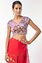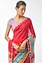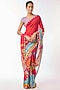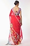 Featuring a red saree in organza base with kalamkari hand paint, hand and machine embroidery. It is paired with a blouse. Accentuate it with statement jewellery and heels for a sangeet ceremony.