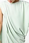 Featuring a baby blue draped cowl dress in crepe base with pleats on the shoulder.