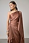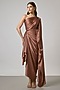 Featuring a brown gown in satin base with one-shoulder neckline, an attached tie-up belt, shoulder trail, pleat and cowl detail. Accentuate it with delicate earrings and heels for an evening party or cocktail.