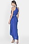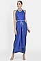 Featuring a cobalt blue gathered draped dress in satin silk and crepe base with a collar and digital print. It is paired with a matching belt.