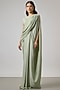 Featuring a sea green gown in double georgette base with pleat and cowl detail. Accentuate it with delicate earrings and heels for an evening party or cocktail.