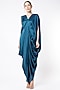 Featuring a teal blue draped kaftan gown in satin silk base with centre pleats and cowl.