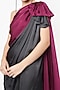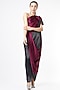 Featuring a wine and grey one-shoulder draped dress in satin base with origami detailing.
