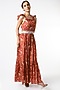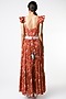 Featuring a rust tiered maxi dress in organic cotton base with smocking, frilled sleeves, and peacock digital print.