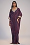 Navy Blue Crepe Printed & Sequins Embroidered Kaftan Dress