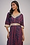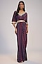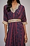 Featuring a navy blue kaftan dress in crepe base with print, pearl and sequins embroidery. It is paired with an embroidered belt. Accentuate it with statement earrings and heels for a festive occasion.