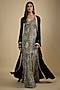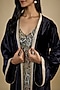 Featuring a black maxi dress in crepe base with snake print. It is paired with a velvet cape having sequins and pearl embroidery. Accentuate it with statement jewellery and wedges, perfect for sangeet ceremony, festive brunches or contemporary celebrations.