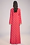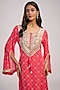 Featuring a fuchsia pink kaftan dress in crepe base with digital print, tassels, gold fringe detail, pearl and sequins embroidery. Accentuate it with statement earrings and heels for a festive occasion.