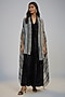 Featuring a black dress in velvet base with halter neck. It is paired with a georgette cape having digital print and sequins embroidery. Accentuate it with stud earrings, heels, and a clutch for an evening look.