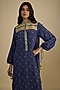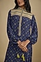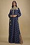 Featuring a blue kaftan dress in crepe base with gota and mirror embroidery, including digital print. Accentuate it with statement jewellery and wedges, perfect for sangeet ceremony, festive brunches or contemporary celebrations.