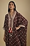 Featuring a brown kaftan dress in crepe base with mirror and gota embroidery, including digital print. Accentuate it with statement jewellery and wedges, perfect for sangeet ceremony, festive brunches or contemporary celebrations.