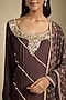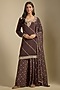 Featuring a brown kurta in crepe base with sequins and pearl embroidery. It is paired with printed sharara pants and a georgette dupatta. Accentuate it with statement earrings and heels for sangeet ceremonies.