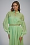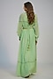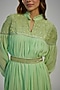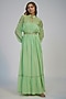 Featuring a green dress in cotton crush base with dori embroidery. It is paired with an embroidered dupion silk belt. Accentuate it with statement earrings and heels for an evening look.