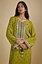 Featuring a green kaftan crepe in crepe base with mirror, tassels and gota embroidery, including digital print. Accentuate it with statement jewellery and wedges, perfect for sangeet ceremony, festive brunches or contemporary celebrations.