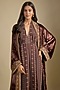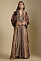 Featuring a brown jumpsuit in crepe base with print. It is paired with a velvet embroidered cape. Accentuate it with statement earrings and block heels for a festive occasion or wedding ceremony.