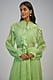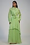 Featuring a lime green ruffled dress in cotton crush base with print. It is paired with an embroidered dupion silk belt. Accentuate it with statement earrings and heels for an evening look.