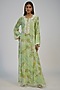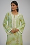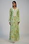 Featuring a lime green kaftan dress in crepe base with print, lace detail and sequins embroidery. Accentuate it with statement earrings and heels for a festive occasion.